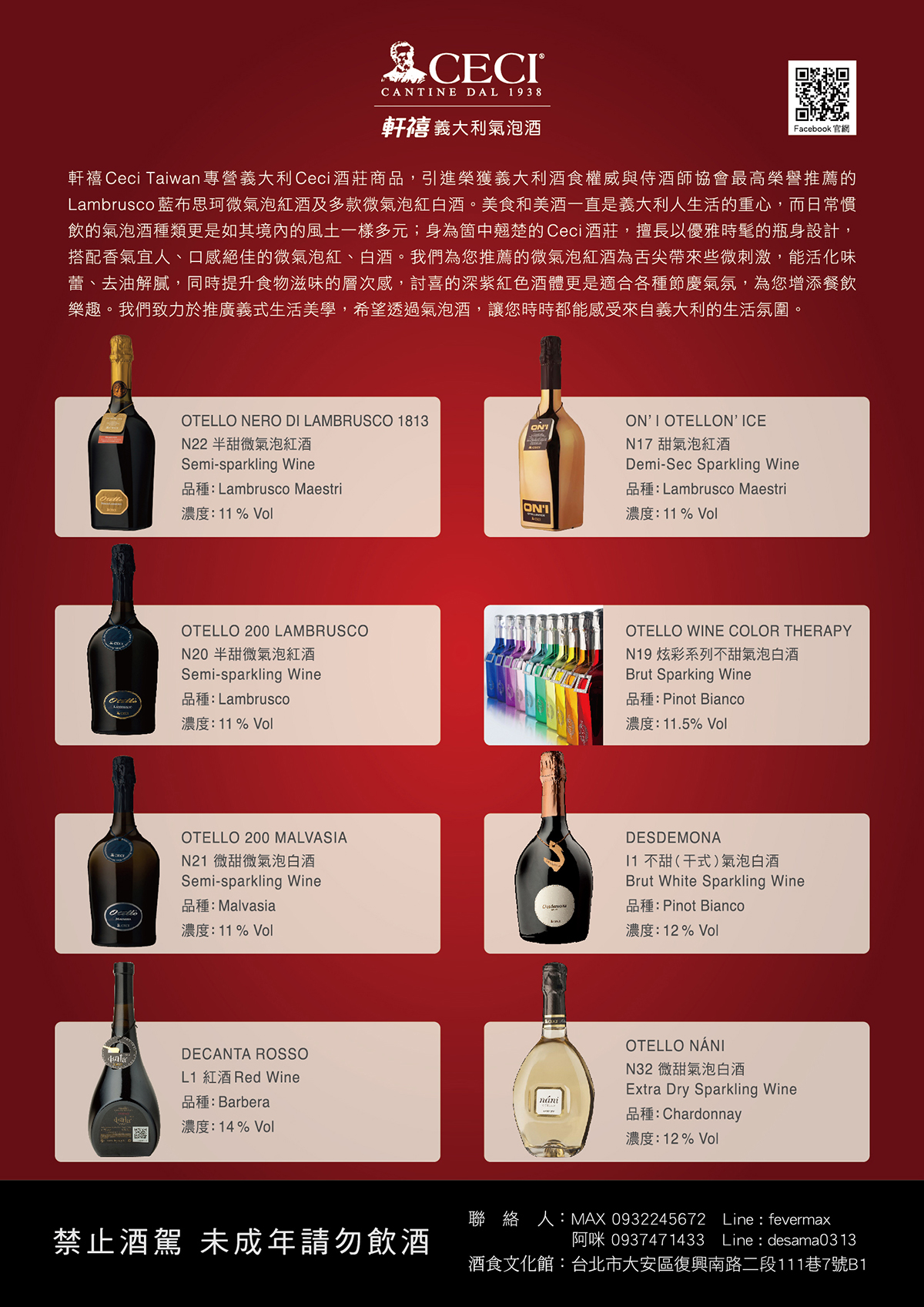 復興Sogo精緻酒展最後四天超特惠大放送 By MAX27 9 月, 201827 9 月, 2018EVENTS 即日起,任選以上三隻酒款除88折外,加送市值$890的Otello 200 Malvasia 氣泡白酒, 並加贈價值$500 義大利時尚小包….歡迎來復興sogo九樓選購試飲,特惠活動時間2018年9月30日止。