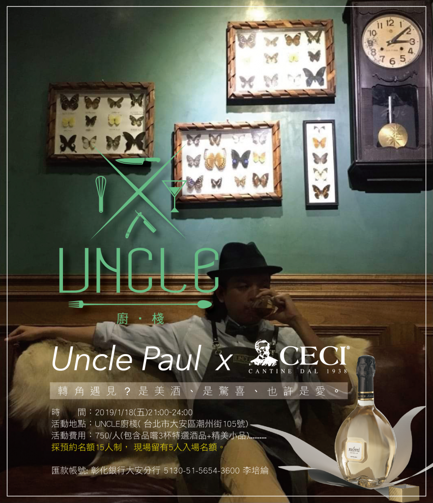 活動地點:UNCLE廚棧( 台北市大安區潮州街105號)